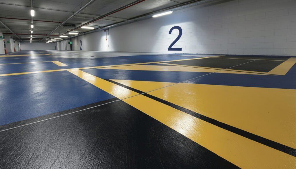 Nous réalisons des parkings en résine offrant une surface durable, esthétique et facile d’entretien. Pour compléter ces aménagements, nous assurons également le marquage sur bitume en résine, garantissant une signalisation résistante, visible et parfaitement adaptée aux contraintes du trafic.